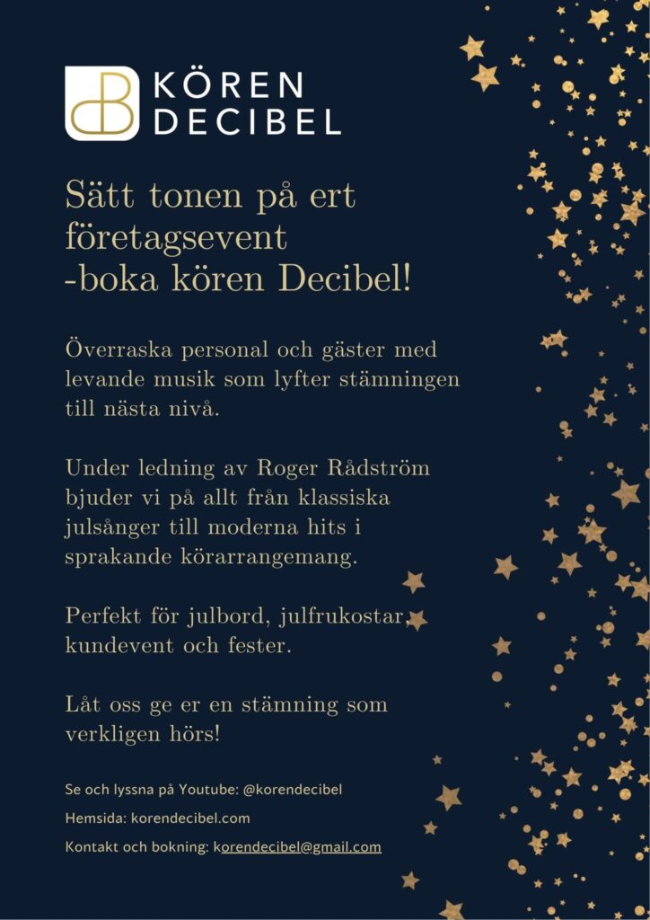 Under ledning av Roger Rådström bjuder vi på allt från klassiska julsånger till moderna hits i sprakande körarrangemang.